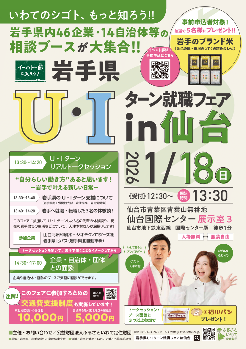 宮城県仙台市で開催される「岩手県U・Iターン就職フェアin仙台」が明日に迫りました。